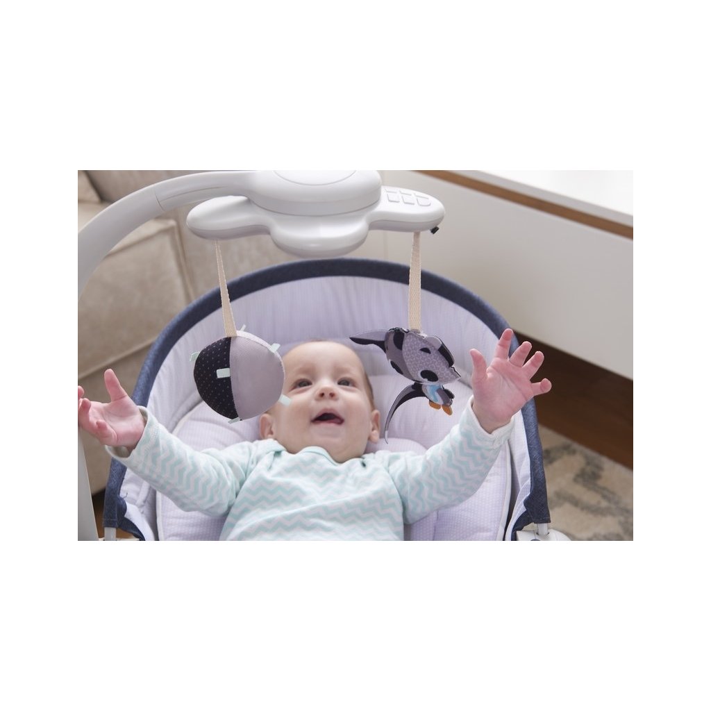 Unikátní lehátko Tiny Love na hraní, spaní a krmení. Hudební box s různými melodiemi a světélky spolu se zavěšenými hračkami dítě zabaví a podporuje rozvoj jeho smyslů. Lehátko lze snadno jednou rukou přeměnit na houpací kolébku s rovným dnem a zvednutými bočnicemi pro spaní miminka. Lehátko nabízí 3 varianty náklonu a možnost jemného vibrování. Ve fixní poloze je možno jej použít jako židličku na krmení. Vhodné pro děti od narození do 9 kg. Barva je tmavě modrá.