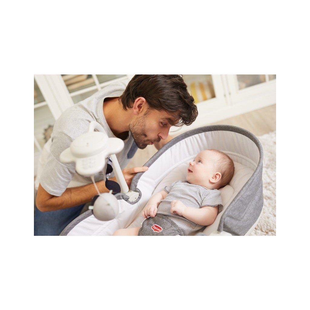 Unikátní lehátko Tiny Love na hraní, spaní a krmení. Hudební box s různými melodiemi a světélky spolu se zavěšenými hračkami dítě zabaví a podporuje rozvoj jeho smyslů. Lehátko lze snadno jednou rukou přeměnit na houpací kolébku s rovným dnem a zvednutými bočnicemi pro spaní miminka. Lehátko nabízí 3 varianty náklonu a možnost jemného vibrování. Ve fixní poloze je možno jej použít jako židličku na krmení. Vhodné pro děti od narození do 9 kg. Barva je šedá.
