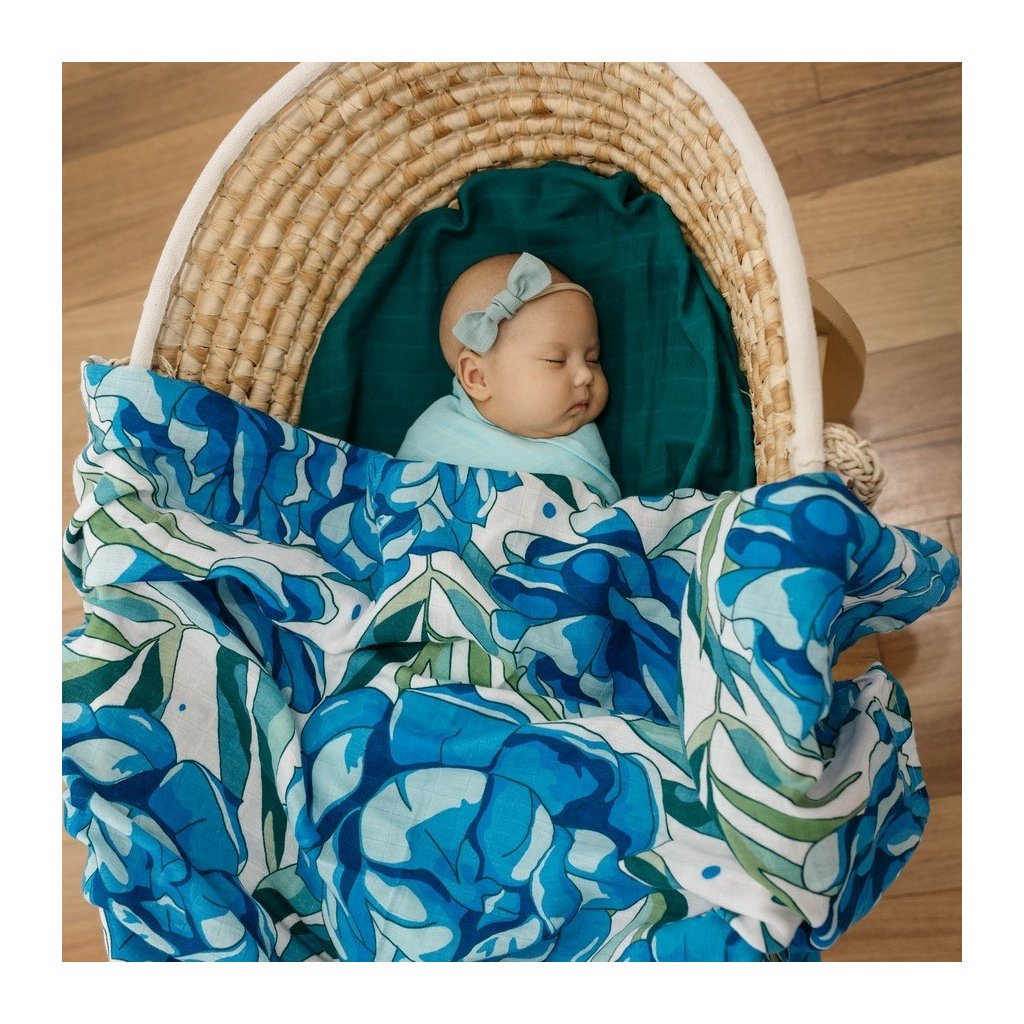 TOMMY LISE Mušelínová plena z bio bavlny 120 x 120 cm Azure Blossom