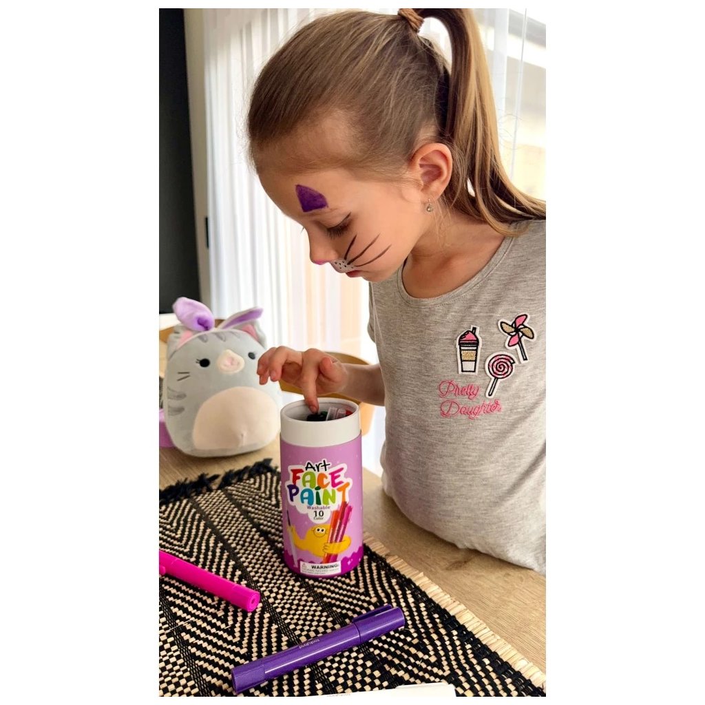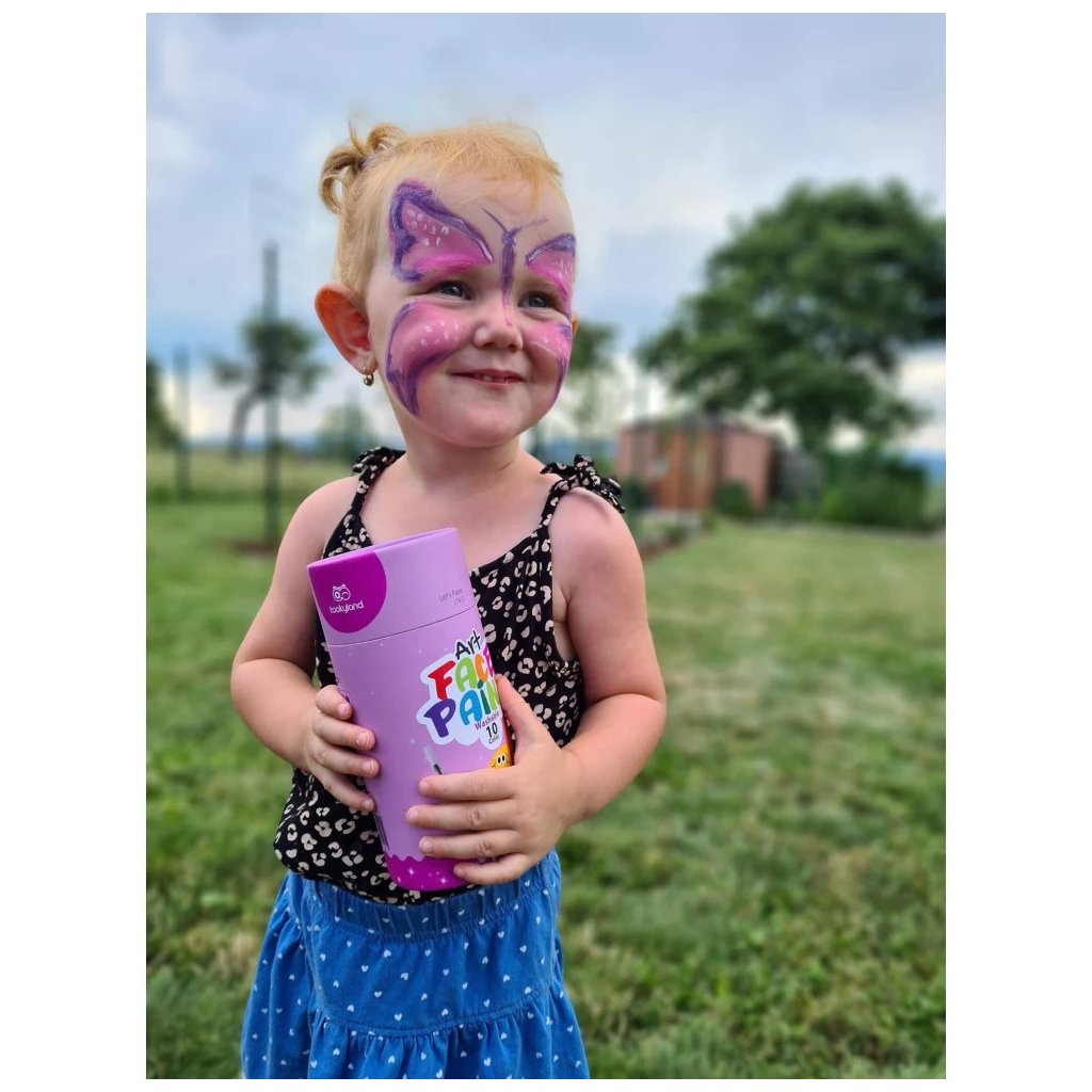 Barvy na obličej potěší každé dítě. Jsou ideální pro karnevaly, narozeniny a další dětské oslavy a setkání. S těmito barvami se vaše ratolest může rychle a snadno proměnit ve svého oblíbeného hrdinu nebo zvíře. Barvy se snadno nanášejí a smývají, takže se nemusíte bát o pokožku svých dětí. Jsou netoxické a dermatologicky testované. Sada obsahuje 10 pastelek s intenzivními barvami, které umožňují vytvářet různé vzory a kombinace. Součástí balení jsou také 2 štětce, díky nimž budou vzory na dětských tvářích ještě detailnější a dokonalejší. Plastová nádoba zajišťuje, že vaše ruce zůstanou čisté, a papírová krabice umožňuje bezpečnou přepravu.