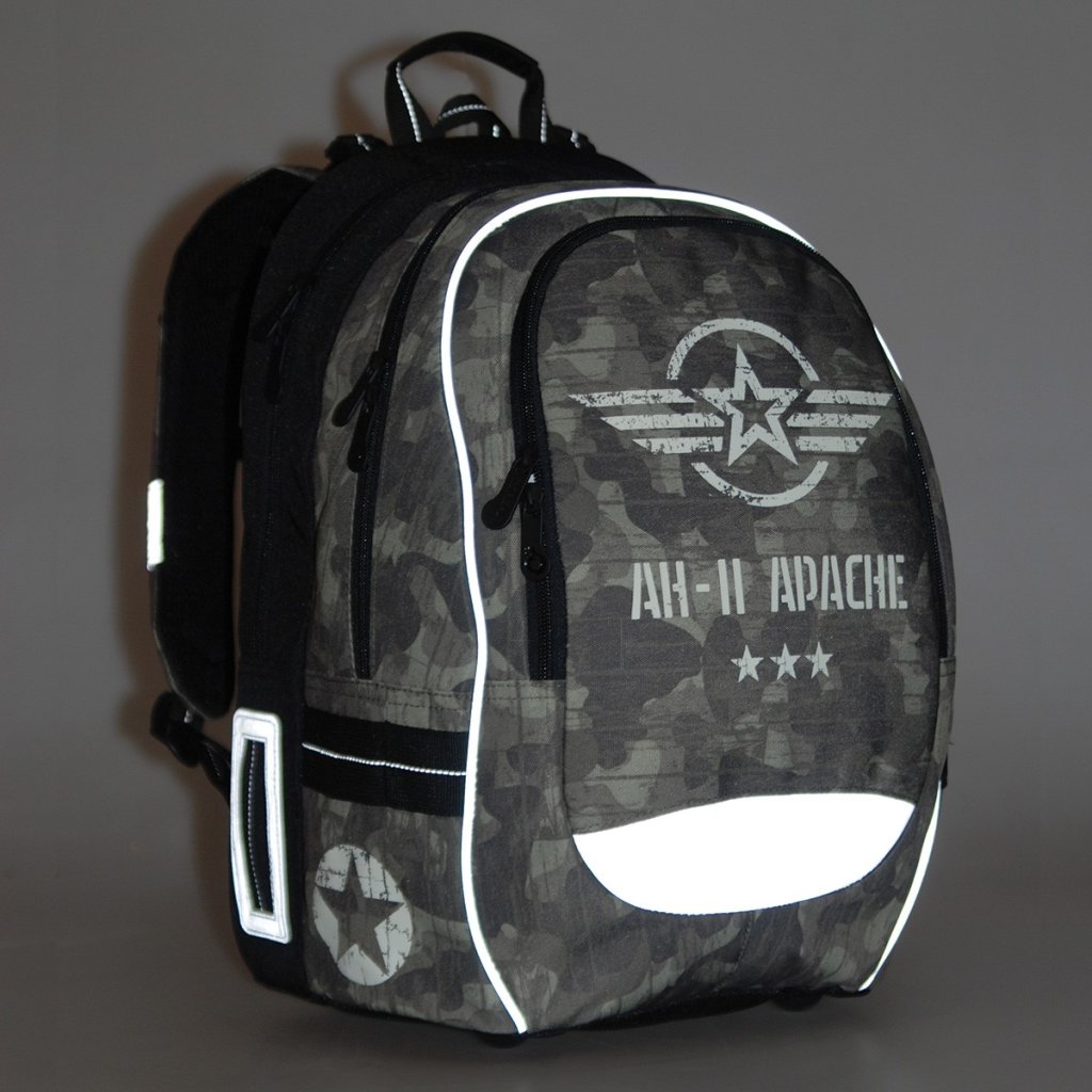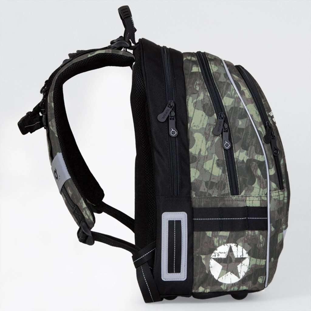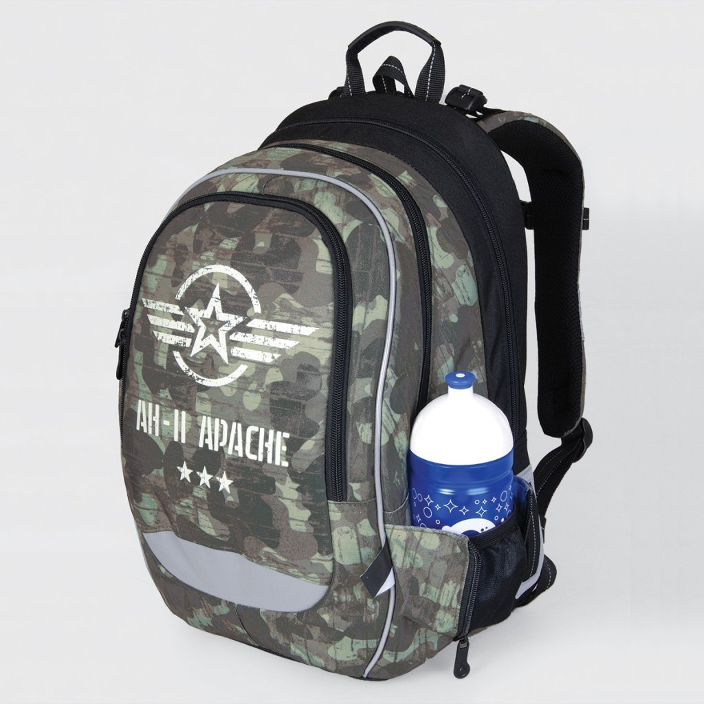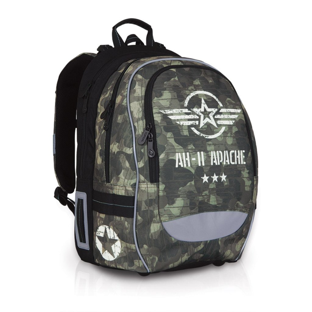 Dvoukomorový školní batoh s vojenským motivem, pro školáky od 2. do 5. třídy