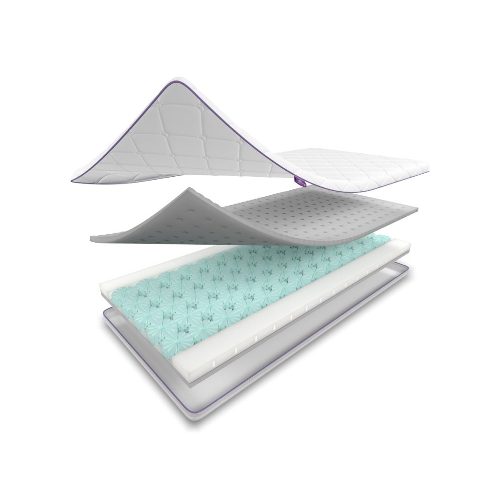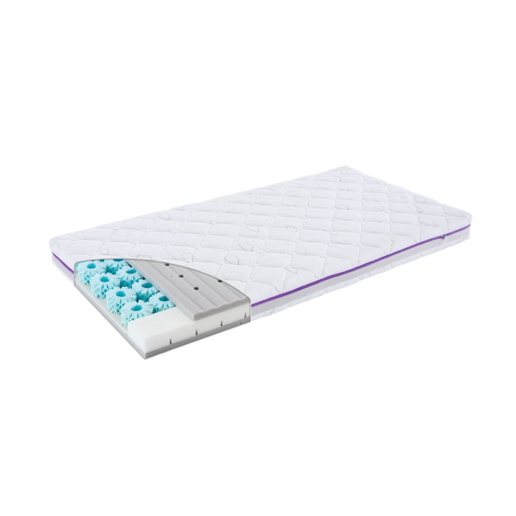 - kojenecká (vlnitá struktura) a dětská strana - díky nim lze každému vývojovému stádiu dítěte zajistit optimální ergonomický komfort (matrace se obrátí při hmotnosti cca 12 kg)