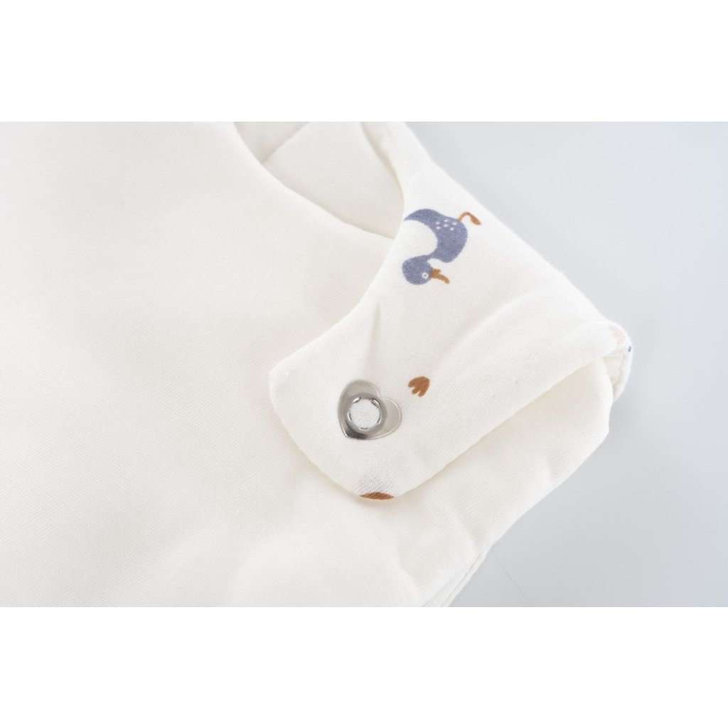 Vnitřní spací pytel se obléká pod vnější psací pytel. V horkých letních dnech může být použit i samostatně. Spací pytel je vyroben ze 100% bavlny, která je krásně měkká, prodyšná a citlivá k dětské pokožce. Použitý materiál má certifikát Öko-Tex Standard 100, který dokládá jeho vhodnost pro použití v dětské postýlce. Bavlna má přírodní barvu a není chemicky bělená. Spací pytel má praktický zavinovací střih a lze ho podél celého obvodu rozepnout na zip, což vám noční přebalování usnadní na maximum. Na hrudníčku zdobí spací pytel jemná výšivka ve tvaru srdíčka.