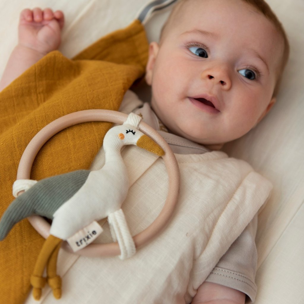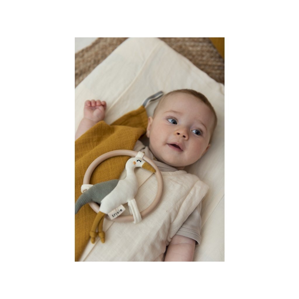 Dokonce i ty nejmenší prsty mohou chytit toto roztomilé chrastítko. Děti mohou toto zábavné chrastítko snadno uchopit a objevit zvuk, který vydává, tím, že s ním zatřesou. S tímto novým malým kamarádem se bude vaše miminko bavit celé hodiny. Tato pletená hračka je vyrobena z organické bavlny s výplní z recyklovaných materiálů.