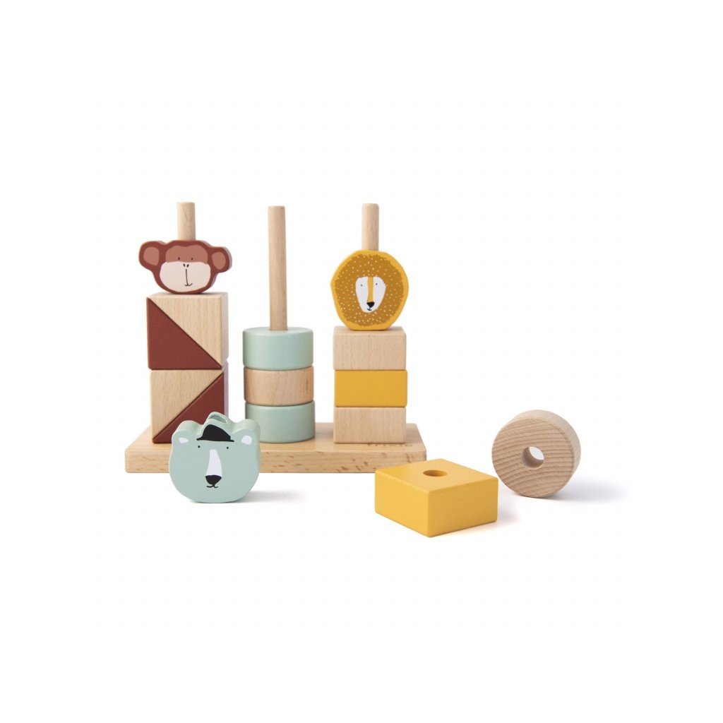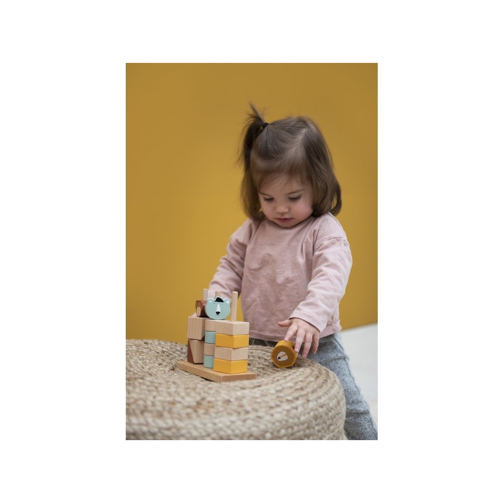 Krásné stohovací kostky, se kterými se můžete nekonečně bavit! S geometrickými kostkami můžete vytvářet zábavné kombinace a nakonec postavit hlavu oblíbeného zvířátka. Perfektní hračka k procvičování jemné motoriky, logického myšlení, představivosti, tvarů a koordinace oko - ruka. Použité barvy jsou pouze na vodní bázi bez chemií, a proto 100% bezpečné pro děti. Vhodné pro děti od 1 roku.