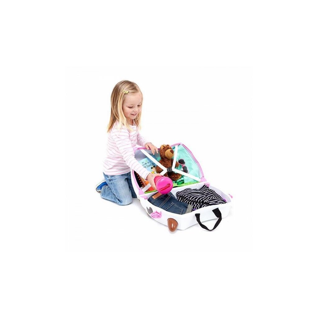 První co Vás upoutá na tomto kufříku, bude jistě jeho barva a zajímavý design. Kromě toho nabízí kufr praktický uložný prostor a také možnost používat ho jako odrážedlo. Kufřík má úchyty na nošení v ruce a ramenní popruh, který zároveň slouží jako tahání odrážedla dítětem nebo rodičem. Kufr je vyroben z lehkého a zároveň odolného plastu. Úložný prostor má objem cca. 18 l. Uvnitř jsou pásy na uchycení obsahu a postranní kapsa.