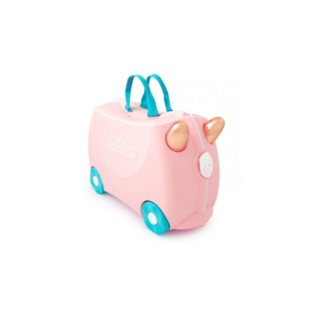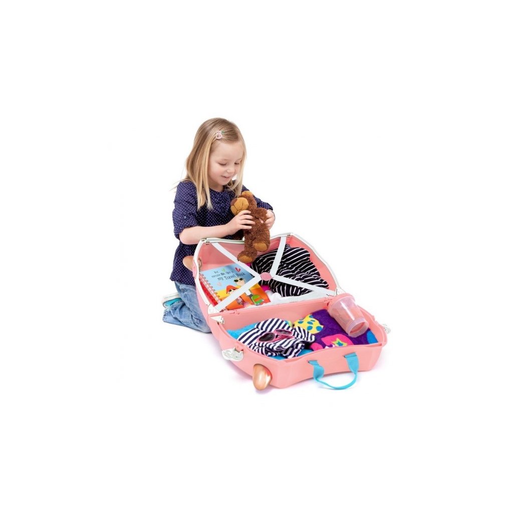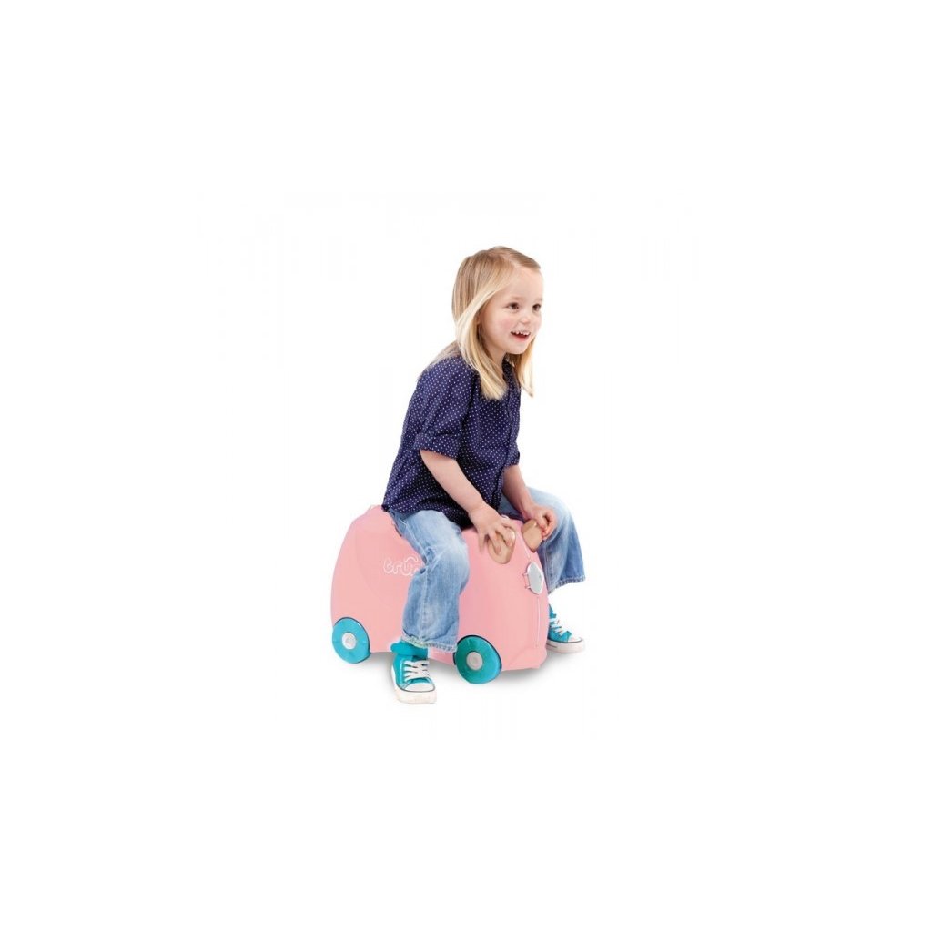 První co Vás upoutá na tomto kufříku, bude jistě jeho barva a zajímavý design. Kromě toho nabízí kufr praktický uložný prostor a také možnost používat ho jako odrážedlo. Kufřík má úchyty na nošení v ruce a ramenní popruh, který zároveň slouží jako tahání odrážedla dítětem nebo rodičem. Kufr je vyroben z lehkého a zároveň odolného plastu. Úložný prostor má objem cca. 18 l. Uvnitř jsou pásy na uchycení obsahu a postranní kapsa. Otevírání i zavírání kufříku je velmi snadné, takže ho zvládne i dítě samotné.