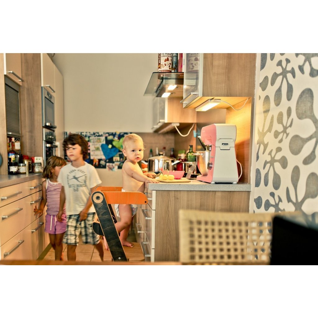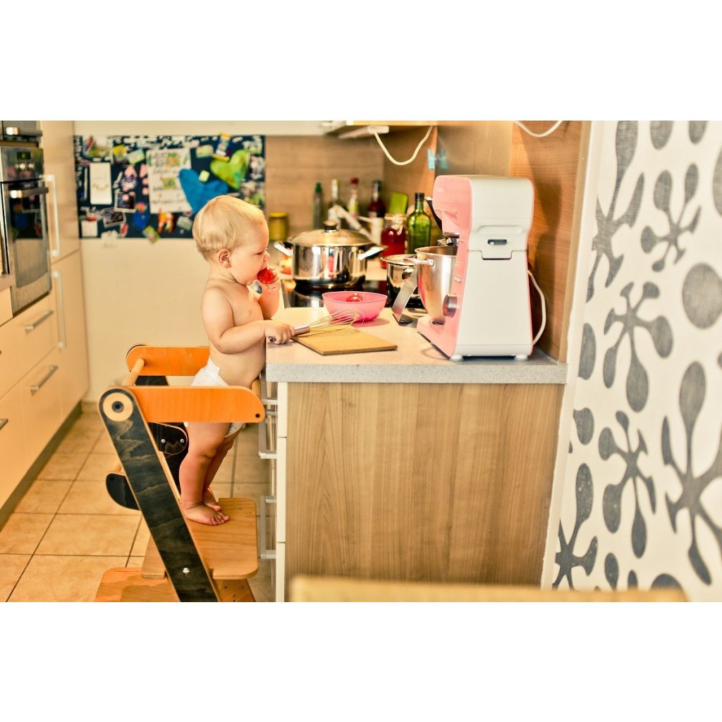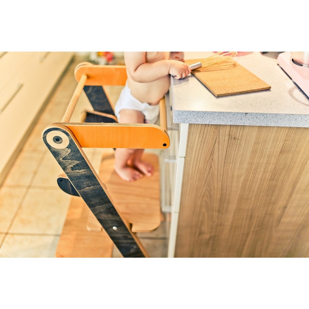 Kid Helper je vymyšlen s ohledem na funkčnost, bezpečí, ale také design a prostor. Je bezpečný, dobře vypadá, ale nebude vám zabírat příliš místa. Je to pomocník pro připravené prostředí. Pozvěte děti do kuchyně a nechte je pracovat s vámi. Vše bezpečně a pohodlně. Bude pomáhat vašim dětem účastnit se života i tam, kam sami nedosáhnou. Díky němu můžete dětem předávat zkušenosti a sdílet s nimi zábavu z vaření a určitě nejen to. Budou samostatnější a naberou spousty zkušeností daleko dřív díky tomu, že jim umožníte bezpečně sdílet prostor dospělých. Kid Helper je verze učící věže, či learning tower, která je rostoucí a po odebrání bočnic slouží dál celé rodině jako schůdky. Běžná doba používání dětmi je od cca roka do 8 let. V budoucnu poslouží i vám jako schůdky pro dosažení vyšších míst.