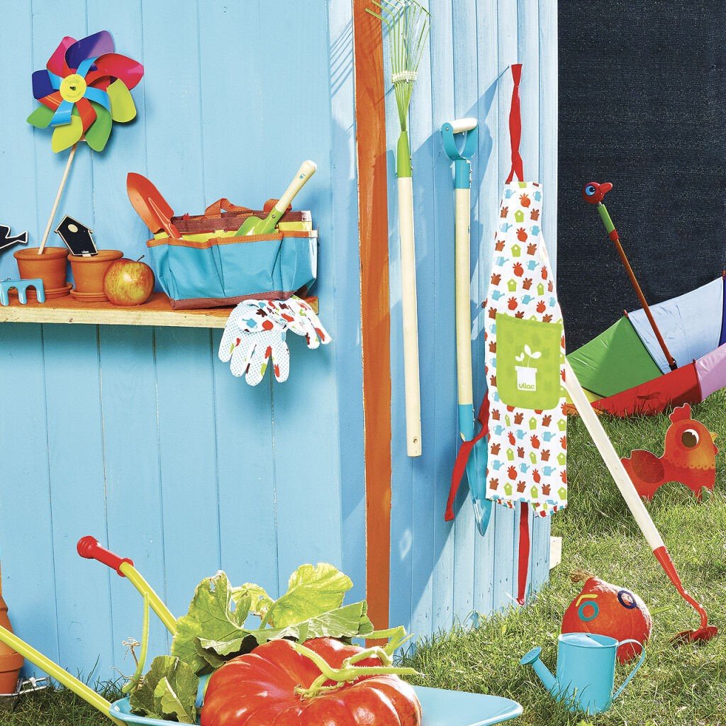Přenosný set malých zahradníků. Tento velmi kvalitní zahradnický set obsahuje lopatku, hrábě, rýč a konvičku. Taška se dá jednoduše vyprat, nářadí omýt vodou. Nářadí je vyrobeno z masivního dřeva a kovu, velikostně tak akorát pro dětské ruce. Pojďme na zahradu!