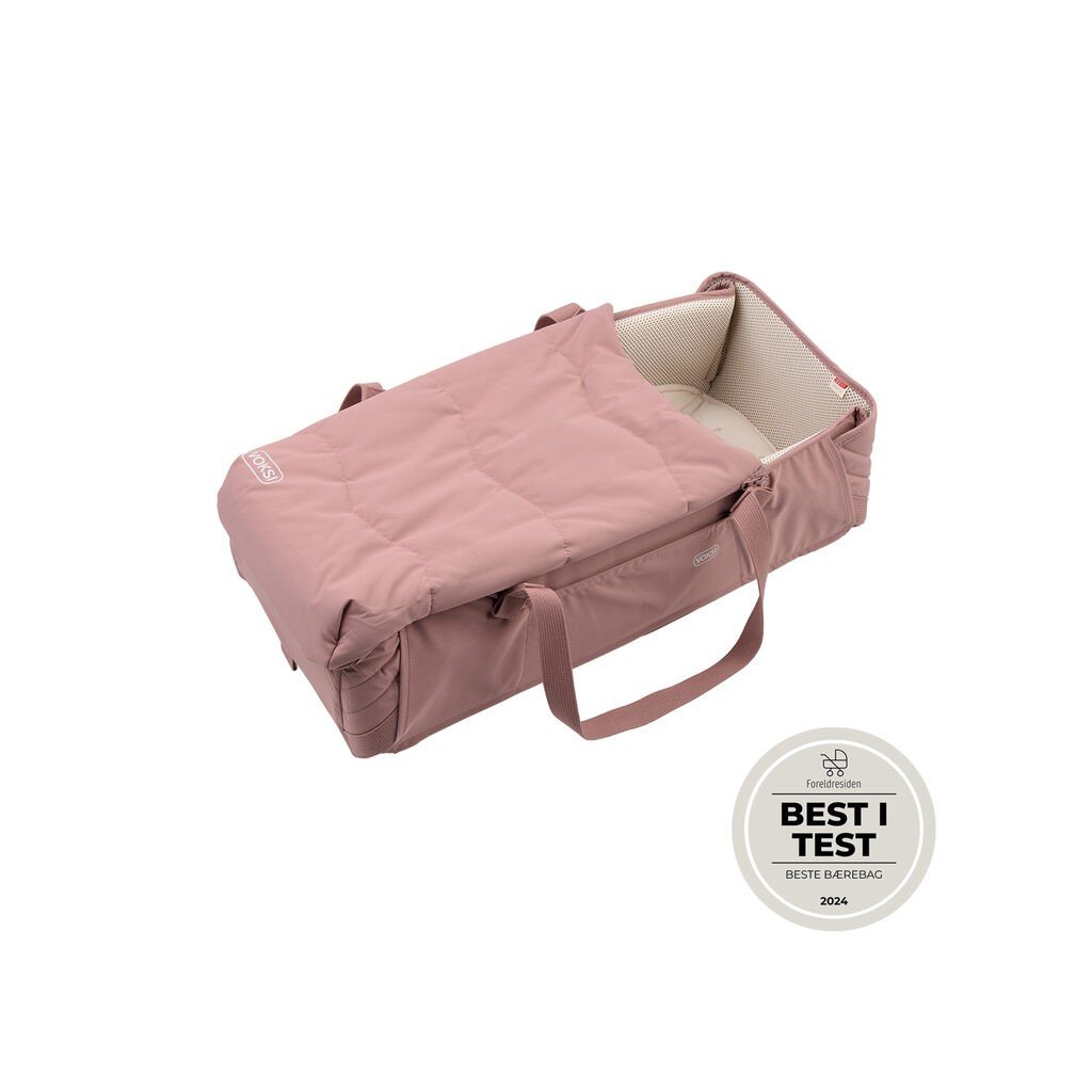 Voksi® Carry Me je prodyšná a měkká taška - postýlka, která poskytuje dítěti komfortní prostor a usnadňuje každodenní práci s miminkem. Poslouží miminku i jako uklidňující místo pro spánek, odpočinek a na hraní. Lůžko se se krásně vejde do většiny kočárků na trhu. Přenosné lůžko Voksi® Carry Me je všestranné a lze ho používat jak vevnitř, tak venku. Umožňuje plynulý přechod od usnutí venku k příjemným chvilkám doma, zajišťuje snadné přenášení a maximální pohodlí pro vaše dítě. Přenosná taška Voksi® Carry Me je vhodná pro novorozence do 6 měsíců (max. 9 kg) a lze ji úplně rozložit. Noste bezpečně své miminko a dopřejte mu ochranu, teplo a mazlení. Perfektní na doma i na cesty. Všechny použité materiály mají certifikaci OEKO-TEX® Standard 100, třída 1, což je značka kvality, která označuje, že žádný z materiálů ve výrobku neobsahuje škodlivé chemikálie. Není nutné před použitím výrobek vyprat. Vnitřní část je kompletně z 3D síťoviny, která zajišťuje pohodlné a bezpečné místo pro vaše miminko. K dispozici má i lehce pratelnou matraci potaženou organickou bavlnou. Spodní část je vybavena pevným odnímatelným dílem, čímž je dosažena velká odolnost produktu. Výplň je z pěnového materiálu a vnější látka z recyklovaného polyesteru, spodní část je velmi snadno udržovatelná, stačí ji jen otřít. V základní výbavě je snadno odepínatelný nánožník, který je větru i voděodolný. Inovativní funkce zámku Voksi Soft ReleaseTM uvolňuje ucha k přenášení pouze tehdy, jsou-li kompletně uzamčené rohy produktu. Díky této funkci je nošení ještě bezpečnější. Pokud rohy na produktu odemknete, nelze lůžko přenášet, ale rozloží se do plochého tvaru. Uzamčení a odemknutí rohů na Carry Me je neslyšné, a tak neruší miminko při spánku. Každou stranu lze uvolnit separátně. Pokládejte Carry Me vždy na vodorovnou plochu, aby se nám miminko neskutálelo ven. Nikdy miminko nenechávejte bez dozoru. Nepoužívejte v posteli. Schváleno dle EN 1466:2023. Vždy si přečtěte a dodržujte pokyny pro správné použití.
