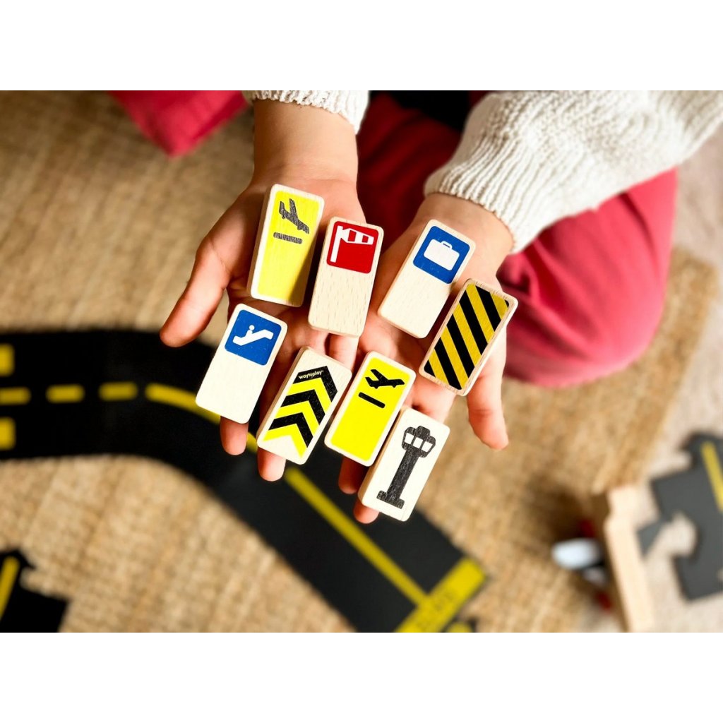 Nechte dětskou fantazii vzlétnout do oblak. Sada Airport Signs přináší 8 tematických dopravních značek inspirovaných světem letišť a létání. Skvěle doplní flexibilní silnice Waytoplay a rozšíří hru o zcela nové scénáře plné dobrodružství. Děti si mohou hrát na řízení letiště, navigaci letadel nebo propojit silniční dopravu s leteckým světem. Tato sada podporuje kreativní myšlení, vyprávění příběhů a rozvoj fantazie daleko za hranice klasické silniční hry.
