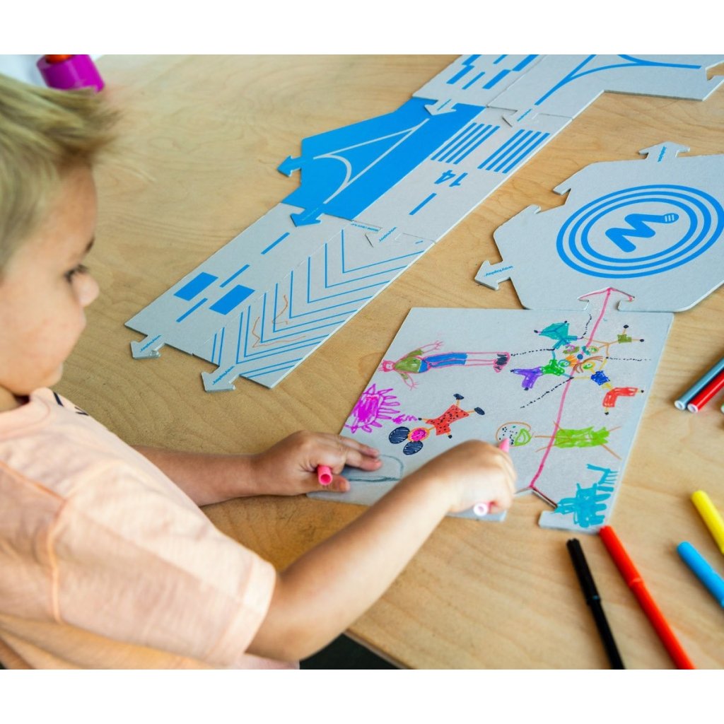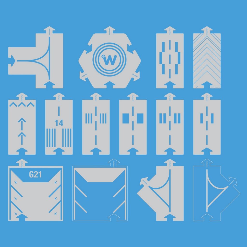 The Runway je nejnovější přírůstek do kartonové řady. Čtrnáct recyklovaných lepenkových dílů s modrou grafikou má typické značení, které lze vidět na letištích, jako jsou pojezdové dráhy, vzletové a přistávací dráhy, brány a helikoptéra. Čtyři nově navržené tvary, které z nich dělají skvělý doplněk řady hraček waytoplay.