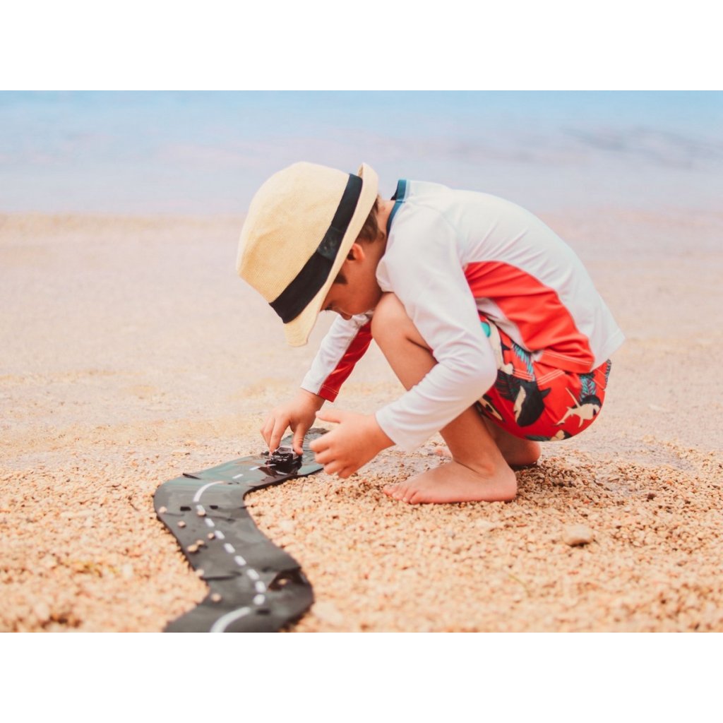 Drive Away Set je nový a zábavný set flexibilních silnic, který rozvíjí kreativitu a fantazii dětí. Obsahuje 11 dílů, které lze libovolně ohýbat, kroutit a kombinovat, takže si děti mohou postavit své vlastní cesty, zatáčky nebo křižovatky. Součástí balení je také bonus navíc – odolné a elegantní dřevěné autíčko připravené vyrazit na dobrodružnou jízdu.