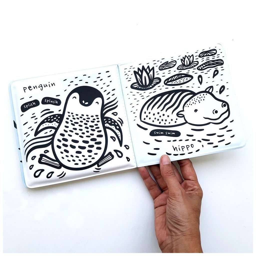Tato krásně ilustrovaná kniha ve vodě magicky změní barvu. Každý černobílý obrázek se v rukou dítěte promění a zaručuje spoustu zábavy při koupání. Děti budou rády sledovat, jak tyto obrázky ožívají, když se ve vaně namočí nebo si je děti mohou za pomoci štětečku (není součástí) samy vymalovat - bez použití barev. A vy budete milovat, že u toho děti neudělají vůbec žádný nepořádek!