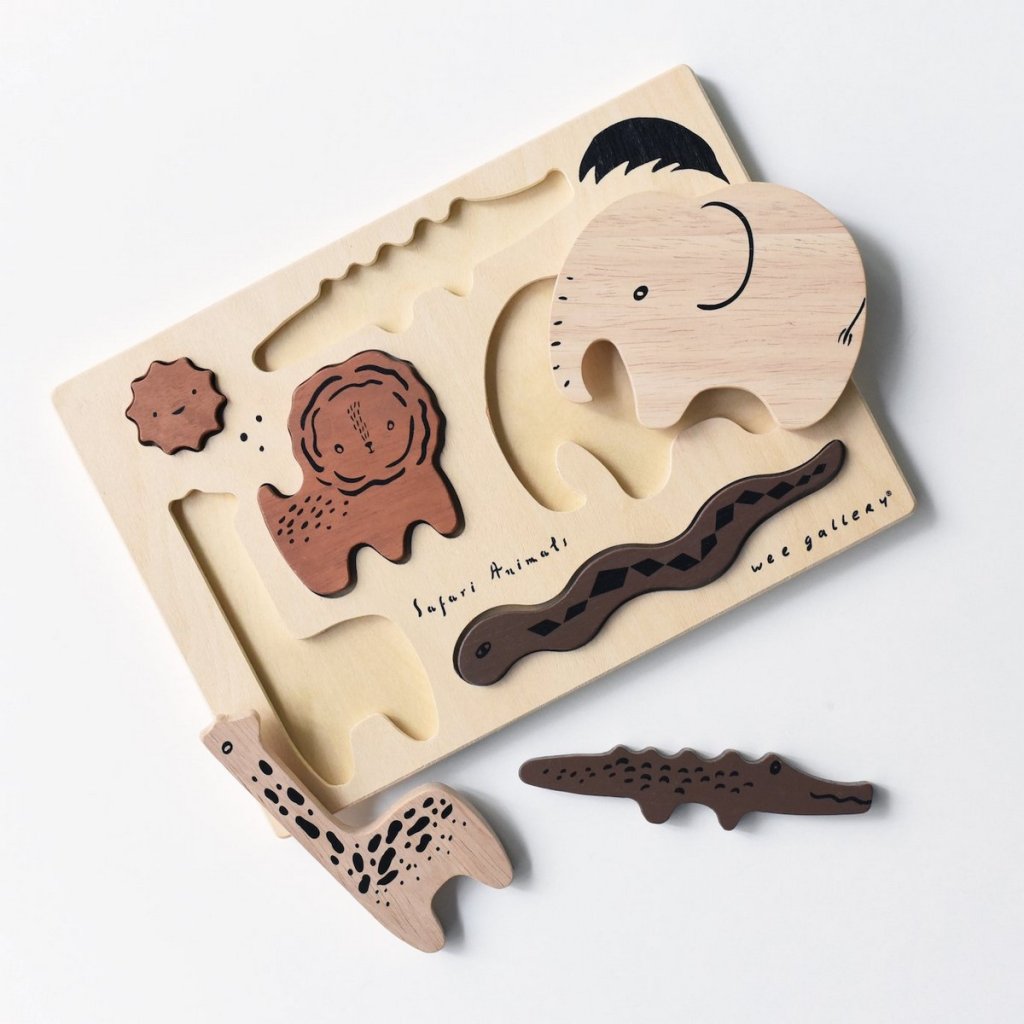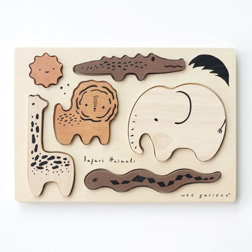 WEE GALLERY Vkládací dřevěné puzzle Safari Animals