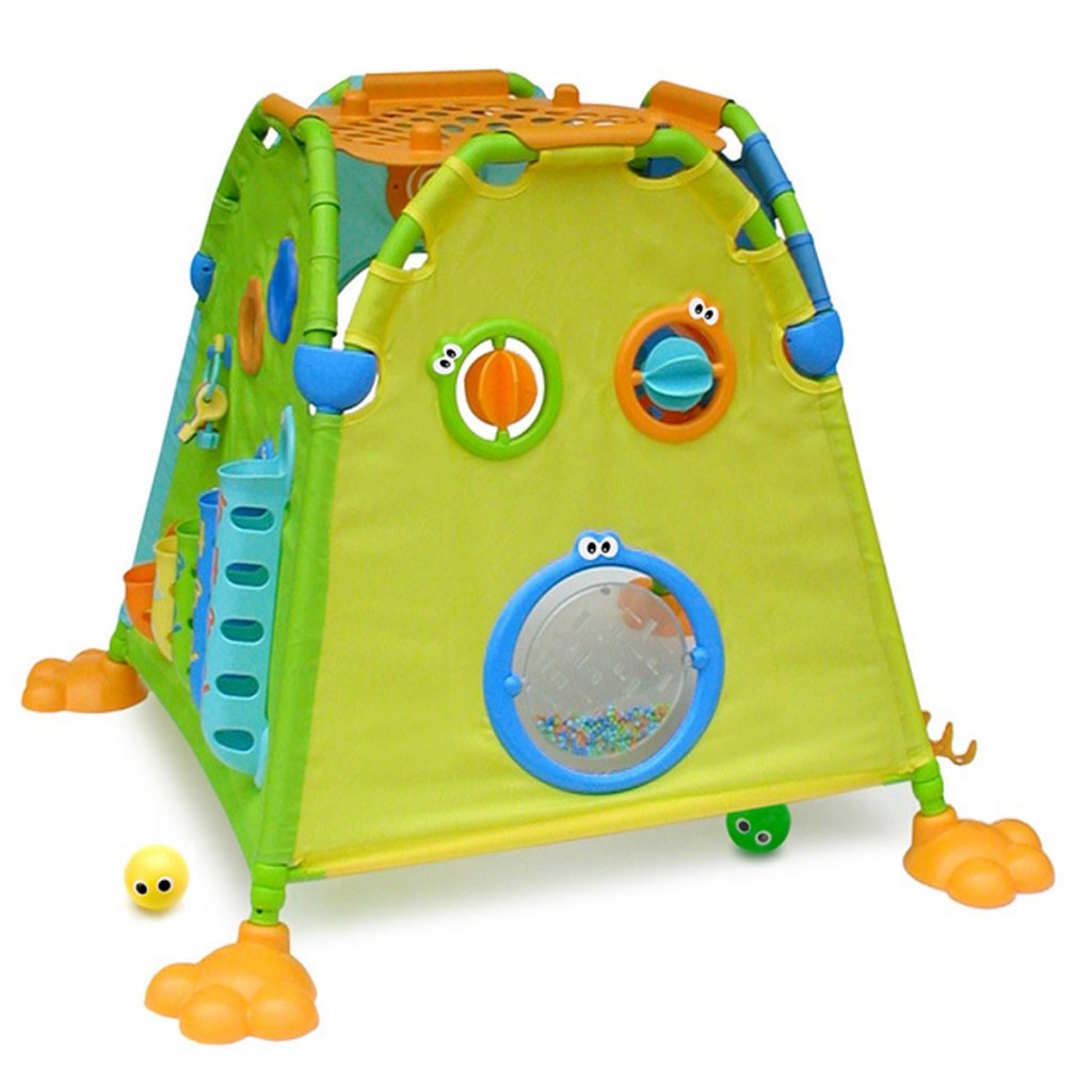 Hrací domeček od firmy Yookidoo má několik různých činností a aktivit, které dítě zabaví a zároveň podpoří jeho fyzický a kognitivní rozvoj. Domeček má aktivity na vnitřní i vnější straně a díky své velikosti je ideální také pro hru více dětí. Hrací domeček je vyroben ze skládací konstrukce s látkovým potahem, díky čemuž se velmi snadno skládá, přenáší a skladuje.