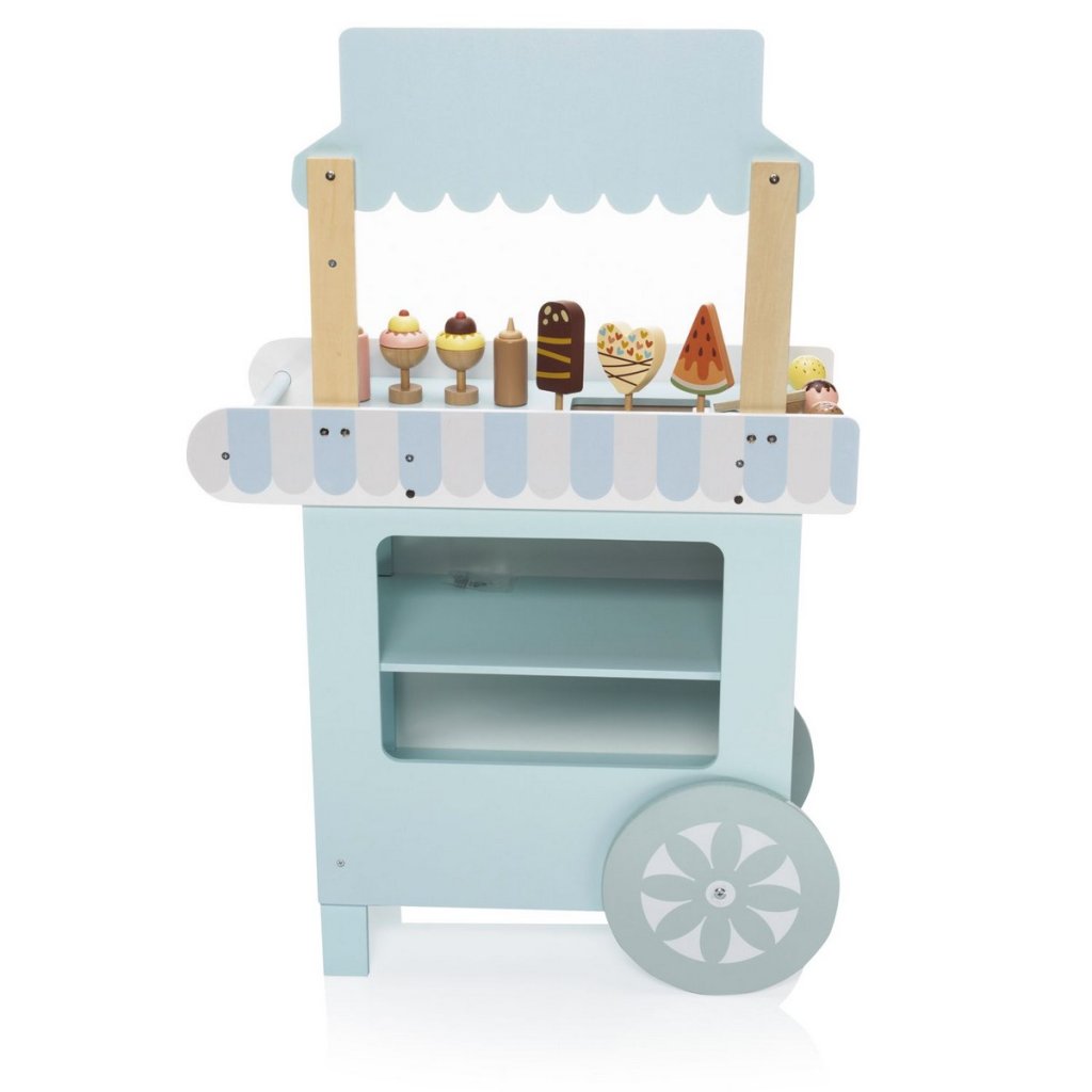 Lahodnou zmrzlinu si teď můžou vaše děti dopřát nejen v létě. Tento propracovaný a barevně laděný set je navržen tak, aby rozvíjel kreativitu, představivost a podporoval hravé hraní rolí. Nádherně vyladěný vozík připomínající prodejnu zmrzliny je připraven vyrazit na cestu do dětského světa fantazie. Děti si zamilují jeho autentický design a jednoduché ovládání. Děti si mohou vychutnat roli skutečného zmrzlináře s porcovacím nástrojem, který jim umožní tvořit dokonalé a lákavé porce jejich oblíbené zmrzliny. Sada obsahuje i mrazící box, který slouží jako hračka a pomůže dětem předstírat, že jejich zmrzlina je vždy čerstvá a chladivá. Naše dřevěné zmrzlinářství je skvělým způsobem, jak rozvíjet fantazii a kreativitu dětí, a zároveň je neodolatelně bude bavit, vy si tak můžete dopřát chvilku pro sebe. Připravte se na bezpočet hodin zábavy a chutných dobrodružství se svými malými zmrzlináři!