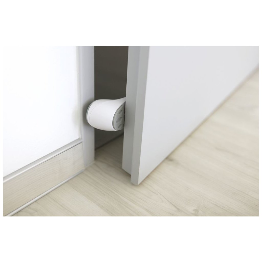Zarážka je vyrobena z kvalitního TRP materiálu, který je flexibilní a protiskluzový. Lze ji umístit kdekoliv na dveřích ve směru zavírání dveří. Při průvanu zabraňuje prásknutí dveří a případnému skřípnutí dítěte. Dá se otočit o 180°.