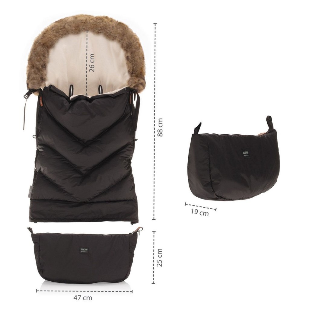 Hřejivý fusak ve stylovém designu vhodný do hlubokého i sportovního kočárku. Fusak chrání dítě před chladným počasím, deštěm i ostrým větrem díky svrchnímu materiálu odolnému proti větru a vodě. Praktické uchycení na horní části fusaku zamezuje nechtěnému sklouznutí dolů při použití ve sportovním kočárku.